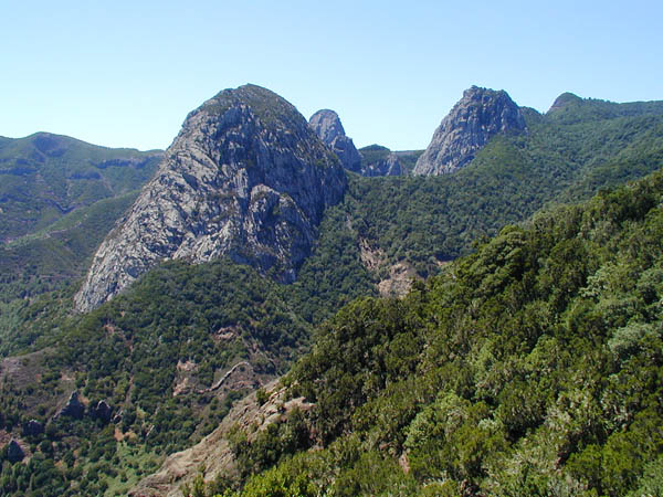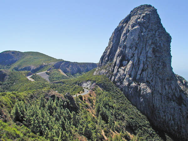 Die Felsnadeln, die "Roques", sind freigewaschene Vulkanschlote. Im Hintergrund ist immer wieder der Tide von Teneriffa zu sehen.